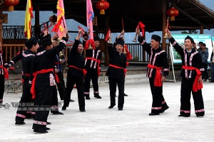 村民们在向采访团表演民俗节目。广西新闻网记者 严江萍 摄