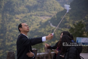 采访团成员在观景台合影。 广西新闻网记者 黄河畅摄