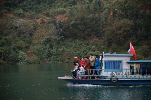 “两岸青山相对驰,轻舟相伴阔水游。娴远山吞绿波行,飞渡驾水长歌远。”乘船游览过程中,采访团成员、石家庄新闻网总编辑霍莉莉有感而发,即兴赋诗一首。她表示,河池的风景给人的印象每天都不一样,这次采访对红水河有了深刻的了解,相信经过今后几年的努力,河池会发展得更好。