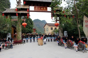 广西新闻网南丹12月3日讯(全媒体报道组)歌娅思谷在瑶语中是有漂亮瑶妹的地方,12月2日下午,河池市南丹县里湖乡的歌娅思谷——中国白裤瑶民俗风情园景区门外,铜鼓响当当,木鼓咚咚,男子手拿鸟铳,女子手端美酒,穿着白裤瑶服饰,正喜迎着“生态长寿地 三姐文化城——2016全国重点网络媒体河池行”采访团的到来。