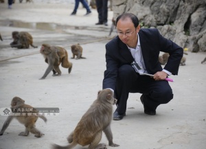 广西新闻网凤山12月4日讯(全媒体报道组)"呀,它摸我的手,一点也不疼""快,再给我一些食物"。12月3日,“生态长寿地 三姐文化城——2016全国重点网络媒体河池行"采访团来到凤山县巴腊猴山参观考察,大家争相给猴子投食,与猴子们来了一次亲密接触。