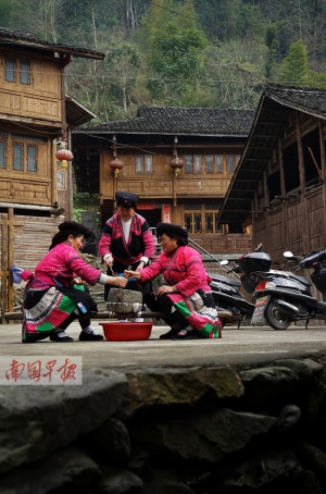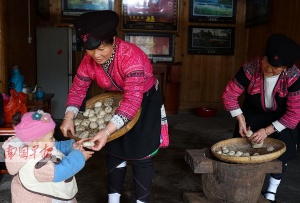 除了吃庖汤,为了迎接春节的到来,这里的瑶族群众还会精心准备各种美味的年节食品,如打糯米粑粑、磨豆腐、烤腊肉和煮米酒等。此外,过年前后,邻居们都喜欢串门,并在寨里举行唱瑶歌、舞龙灯、顶竹竿、抛绣球等丰富多彩的活动。瑶寨里处处弥漫着浓浓的年味。