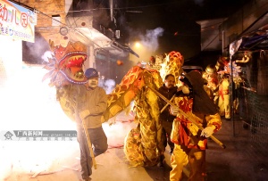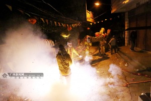 2月11日晚,柳州市融安县板榄镇群众在舞炮龙。广西新闻网通讯员 谭凯兴摄