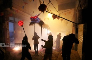 [新春走基层]高清:融安县板榄镇群众舞炮龙庆元宵 (1/6)