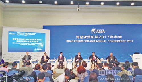 在博鳌亚洲论坛2017年年会新闻发布会暨博鳌亚洲论坛学术发布会上,与会嘉宾正在发言。经济日报记者 徐惠喜摄