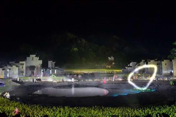 记者在舞台上表演 观梦里老家演出,品婺源千年轮回!据了解,《梦里老家》演出分为“雪韵”、“枫韵”、“荷韵”、“蝶韵”四幕。以一个常年在外婺源游子的乡愁为主题,围绕婺源四季景色变化,融入婺源民俗文化精髓,以冬、秋、夏、春的顺序倒演,依托自然山水,采用先进的声、光、电科技手段和舞台机械,展示古徽州的商贾文化、书乡文化、茶文化、婚嫁文化、农耕文化以及历史名人文化。 |