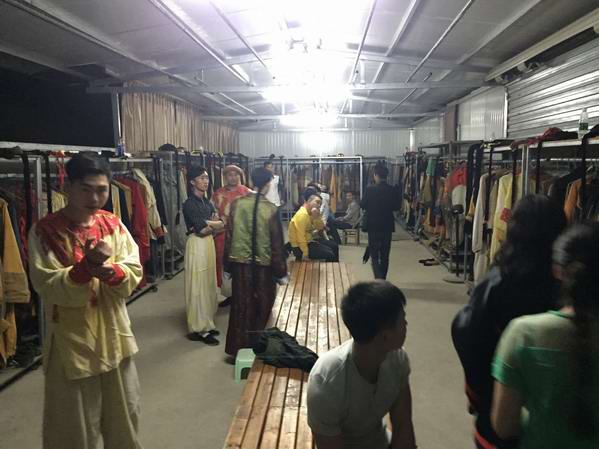 群众演员已穿戴好服装 江西手机报讯 记者赵婉露报道:你不归,灯不灭......咫尺之遥,恍如穿越千年,坠入梦里老家。17日晚,婺源大型山水实景演出《梦里老家》迎来了两位特殊的演员。这两位特殊的演员不是科班毕业但是胆子够大,名气不大但是运气够好,第一次演出就登上了如此大型的舞台表演,这运气也是没sei了。他们就是来自“第三届全国融媒体看江西”活动的记者邱虎、邵平。为何幸运之神会降临在他们身上呢?事情还要从此次采访说起。 17日晚,来自全国近50家融媒体看江西的采访团成员来到《梦里老家》观看演出。为了了解演出舞台背后的故事,记者邱虎、邵平经过与该演出团谢团长的沟通,走进了后台通过直播的方式为大家揭秘。要知道,这是该演出第一次对外人开放后台。原本以为这已经很幸运了,没想到更幸运的是,他们又创下了一个“第一”,成为第一批没经过系统的培训就客串他们的群演。 经过简单培训,这两个“群演”就这么上台了。而且很顺利地将演出表演完毕。对于两位都是第一登上舞台表演的他们,既兴奋又紧张。邱虎告诉记者,“虽然安排的几个动作很简单,比如商人碰面作作揖的姿势,但是因为第一次登上舞台,而且又是面对那么多的观众,可不能因为自己演砸了,所以就这几个简单动作我一直在台下排练。这次表演是人生中一个很不错的经历,可惜略带遗憾,大家没看出哪个是我。”“虽然团长告诉我们不要紧张,会安排一位演员带着我们提醒动作,但是上这么大的舞台怎么可能不紧张,以至于表演时差点就走错了方向,还多亏了前辈演员的提醒,这次体验真的让我切实地感受到了,演员的不容易,真的是台上一分钟,台下十年功。希望下次有机会还能参与这样的演出,”邵平说道。