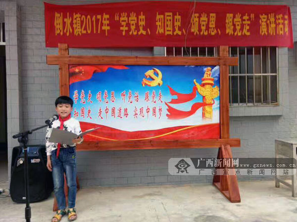 倒水镇组织中小学生开展主题演讲活动,引导青少年扣好“人生第一粒扣子”。广西新闻网通讯员 潘卿 摄