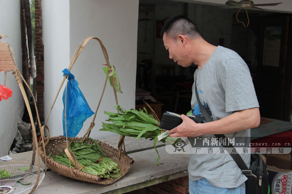 在泗洲村的无人菜摊,村民买菜自觉付款,折射乡村新民风。广西新闻网记者 王文英 摄
