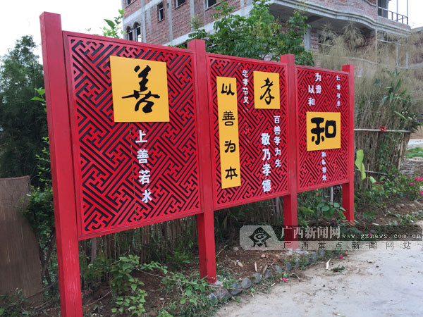 长洲区在辖区的主要路口、交通要道、旅游景点、农家乐等地设立宣传栏或宣传牌宣传社会主义核心价值观,让群众抬头可见,举手可触。广西新闻网记者 梁馨予 摄