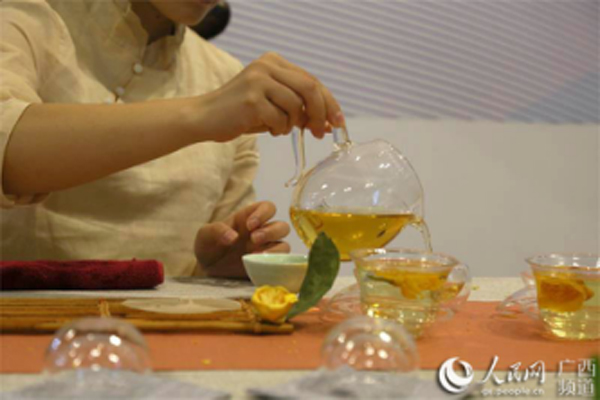 资料记载,1960年,中国科学工作者首次在广西南宁一带发现了一种金黄色的山茶花,并将其命名为金花茶。因金花茶具有高度的科研、药用、经济价值,有“植物界大熊猫”、“茶族皇后”的美誉。(完)