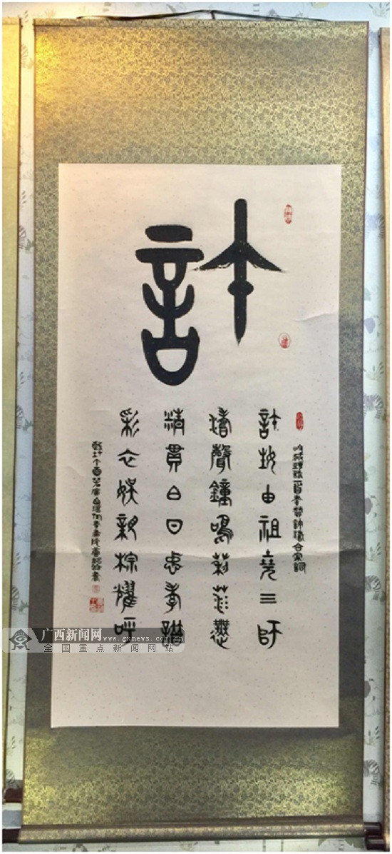 总结:藏头诗体现中国传统文化内涵,欣赏了藏头诗、名字文化词的风采,从许姓氏的起源,多角度的简述许姓氏的来源和各种传说,延伸许姓家族的繁衍历程,以及妻子钟姓的起源有姓氏的来源,历史的典故,成语的出处,词组的补充,如:许由、尧(舜、禹)、涛声、钟鸣、精贯白日、彩衣娱亲、棕耀(子)等,运用抽象、借比、形象等表现笔法,描绘主人翁丰富多彩的情感世界,对理想目标的执着追求,自然巧妙的将夫(许涛)妻(钟莉莎)子(许棕耀)名字融入到藏头诗的内容,展示家庭喜乐融融,家和万事兴的幸福家庭,丰富了名字的内涵,赞美主人翁良好的心态,为光宗耀祖努力奋斗,夫妻共同谱写家族新篇章,规划人生乾坤图,赞美:许涛 精彩的意义及寓意可见。(广西瑶族书画院院长 唐铭)