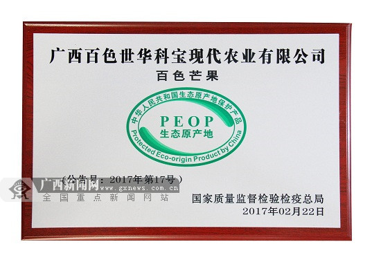 建铭生态农业发展有限公司现如今已经有两种产品获得中华人民共和国保护产品认定,即:百色芒果、德保脐橙。