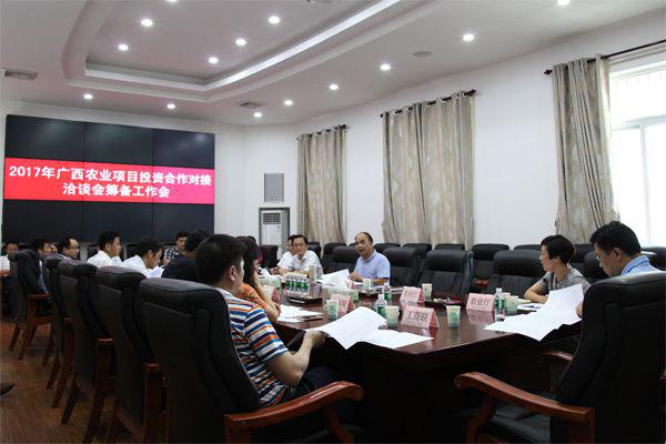 自治区工业和信息化委、科技厅、农业厅、商务厅、海洋和渔业厅、投资促进局、工商联、农垦局、广西农科院等相关负责人参加会议。