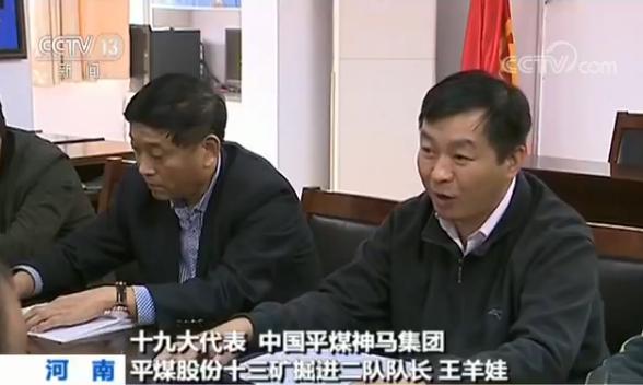 十九大代表 中国平煤神马集团平煤股份十三矿掘进二队队长 王羊娃:“党的十九大报告说了一段话,要弘扬劳模精神和工匠精神,营造劳动光荣的社会风尚和精益求精的敬业风气,对我们一线工人来说,是一种尊重,也是一种认可。”