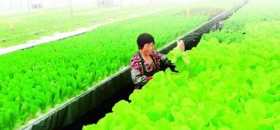 返乡农民工仇云菊在江苏启东市嘉禾力农业发展有限公司智能电力恒温大棚内采摘有机蔬菜。新华社发