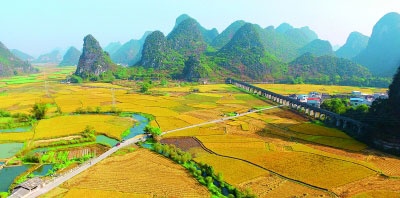 航拍的广西柳州市柳江区成团镇稻田。 新华社发