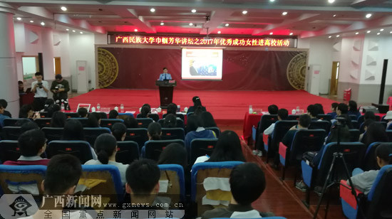 广西新闻网南宁11月17日讯(记者蒋尧 实习生苏美玲 )为学习宣传贯彻十九大精神,引领大学生见贤思齐,做有理想、有本领、有担当的新时代大学生,11月16日,自治区妇联、自治区教育联合举办的“巾帼心向党 建功新时代”2017年广西优秀成功女性进高校活动走进广西民族大学,5名优秀成功女性与大学生一起畅谈学习十九大精神的心得体会,分享立足岗位、建功立业的人生感悟,传播弘扬“自尊、自信、自立、自强”的女性“四自”精神,为新时代大学生尤其是女大学生成长成才励志引航。