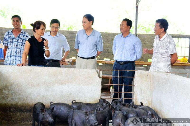 相关领导在沈晓鸣家了解养猪收入情况。