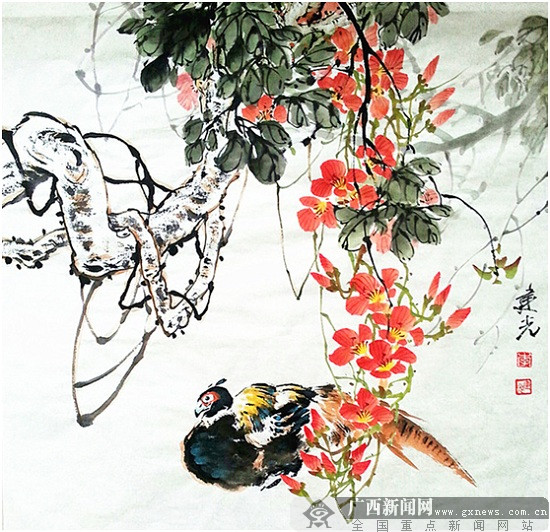 李建光,男,1940年生,广西崇左人,汉族。大学本科毕业,长期从事教育工作,正高职称。自幼酷爱书法绘画,系广西书法家协会会员。多年来师从著名花鸟画家黄忠耿教授研习绘画,系岭南画派传人黄忠耿先生入室弟子。擅长写意花鸟画,涉及山水书法等。作品参加区市各级各类书画展,并有获各种等级奖。