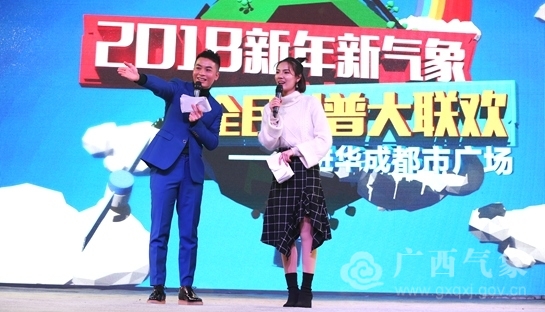 1月12日,广西气象服务中心与广西电视台影视频道走进南宁市华成都市广场,联合举办2018新年新气象全民科普大联欢活动。