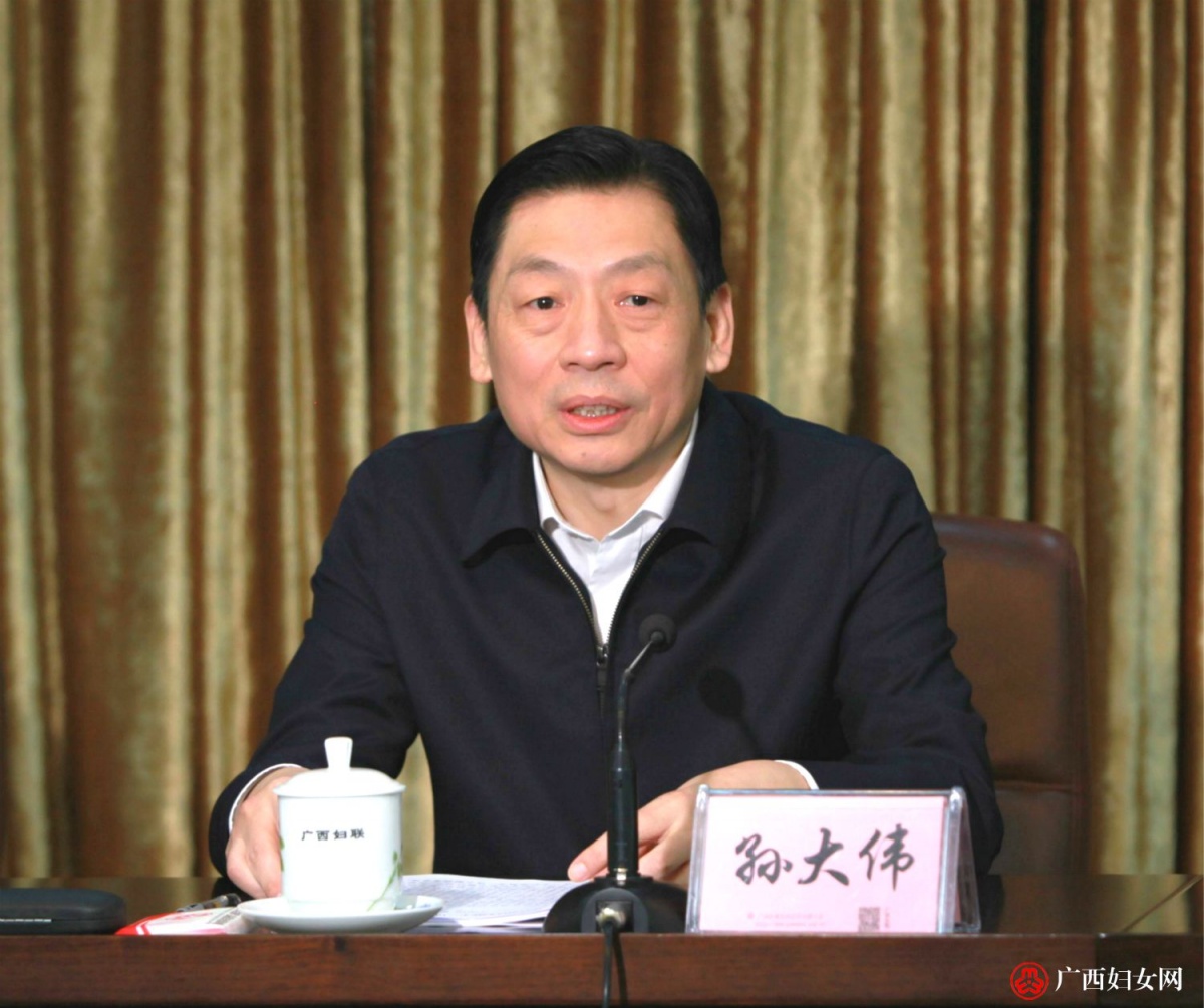 孙大伟表示,妇联组织作为党联系妇女群众的重要桥梁和纽带,要坚持以习近平新时代中国特色社会主义思想为引领,深入贯彻落实党的十九大精神,保持和增强群团组织的政治性、先进性、群众性,始终自觉坚持党的领导,不忘初心,牢记使命,团结带领全区妇女群众为扎实推进富民兴桂各项事业、奋力谱写新时代广西发展新篇章贡献巾帼力量。