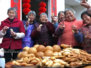 广西新闻网梧州2月10日讯(记者梁馨予 通讯员梁少欢)蒸年糕、包粽子、炸糖环、做糍粑、炸煎堆……临近春节,在梧州市长洲区富万村和泗洲村里,辛劳了一年的村民们怀着收获的喜悦和对来年的期盼,不少人家已经备好大锅灶开始制作传统的过年食品了,浓浓的年味弥漫在整个村子里。