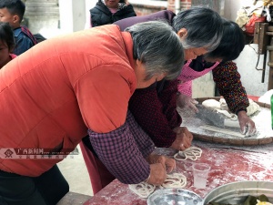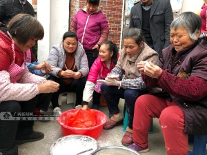 逢年过节村民都会相约聚在一起,制作传统小吃。广西新闻网记者梁馨予摄