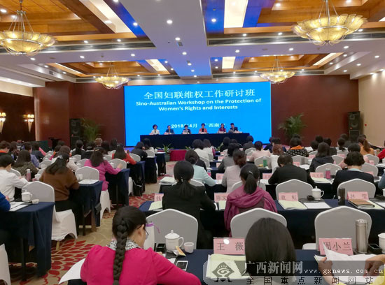 广西新闻网南宁4月10日讯(记者 蒋尧 通讯员 黄威)4月9日-4月11日,由全国妇联权益部主办、广西妇联承办的全国妇联维权工作研讨班在南宁举行。澳大利亚有关专家,全国31个省(区、市)、新疆生产建设兵团和计划单列市妇联分管维权工作的副主席、权益部长等百余人参加此次活动。