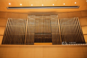 在音乐厅内,一台嵌于墙体的巨型乐器吸引了记者们的目光。四层键盘设置,62个音栓旋柄,数千根大大小小的金属音管或镶嵌墙内或裸露于外,这便是广西文化艺术中心的“镇厅之宝”,有“乐器之王”之称的管风琴。“管风琴属气鸣式键盘乐器,由音管、音栓、键盘及一系列机械部件组成,音量雄伟,音色优美庄重还能模仿管弦乐器的效果,目前在全广西仅此一架,就在我们的文化艺术中心。”。讲解员介绍到。