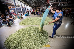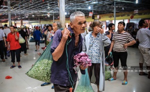在这里,来自全国各大茶商的委托经销户向横县茉莉种植户收购新鲜茉莉花,日均交易量可达150吨。每天的茉莉花交易价格如同股市般波动,根据气候以及花品相,交易价格随之上下浮动。“昨天卖的都有14块钱1斤,今天才卖10块钱。没办法,下雨了,花进水品质就不好了。”前来卖花的种植户告诉记者。