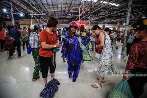 驮着大包小包茉莉花的种植户蜂拥而至,各自奔向相熟的经销户,熟练地把身上背着的装满新采摘茉莉花的大网兜往摊位秤上一扔,经销户报数收货后把抖空的大网兜隔着里三层外三层的种植户往外潇洒一抛,网兜总能神奇地回到它的主人手中。这便是茉莉花市场里每日发生的盛景,在这,熙熙攘攘的人群脸上总是洋溢着笑容,让围观的人不自觉地心生欢喜。
