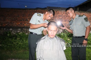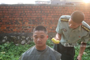 据了解,此前该学院都是从外边请专门的师傅负责给新生剃头,这届有了很大的变化,给学生剃头的全部是学院的学长。在现场,记者发现三位学长手法都很是娴熟,不用几分钟,剃刀上下翻飞,一个任务就结束了,他们一个个俨然是真正的理发师。在3位“理发师”中,李旺被大家公认为技艺最高。原来,李旺平时就经常给同学剃头,自己研究得多,做得多,慢慢手法就熟了。李旺剃头时很认真,几分钟就可以搞定一个,好多在场的新生都开玩笑说可以开个理发店了。