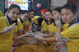 学生们动手做月饼,香甜迎中秋。广西新闻网通讯员 莫邵祯 杜海萍摄