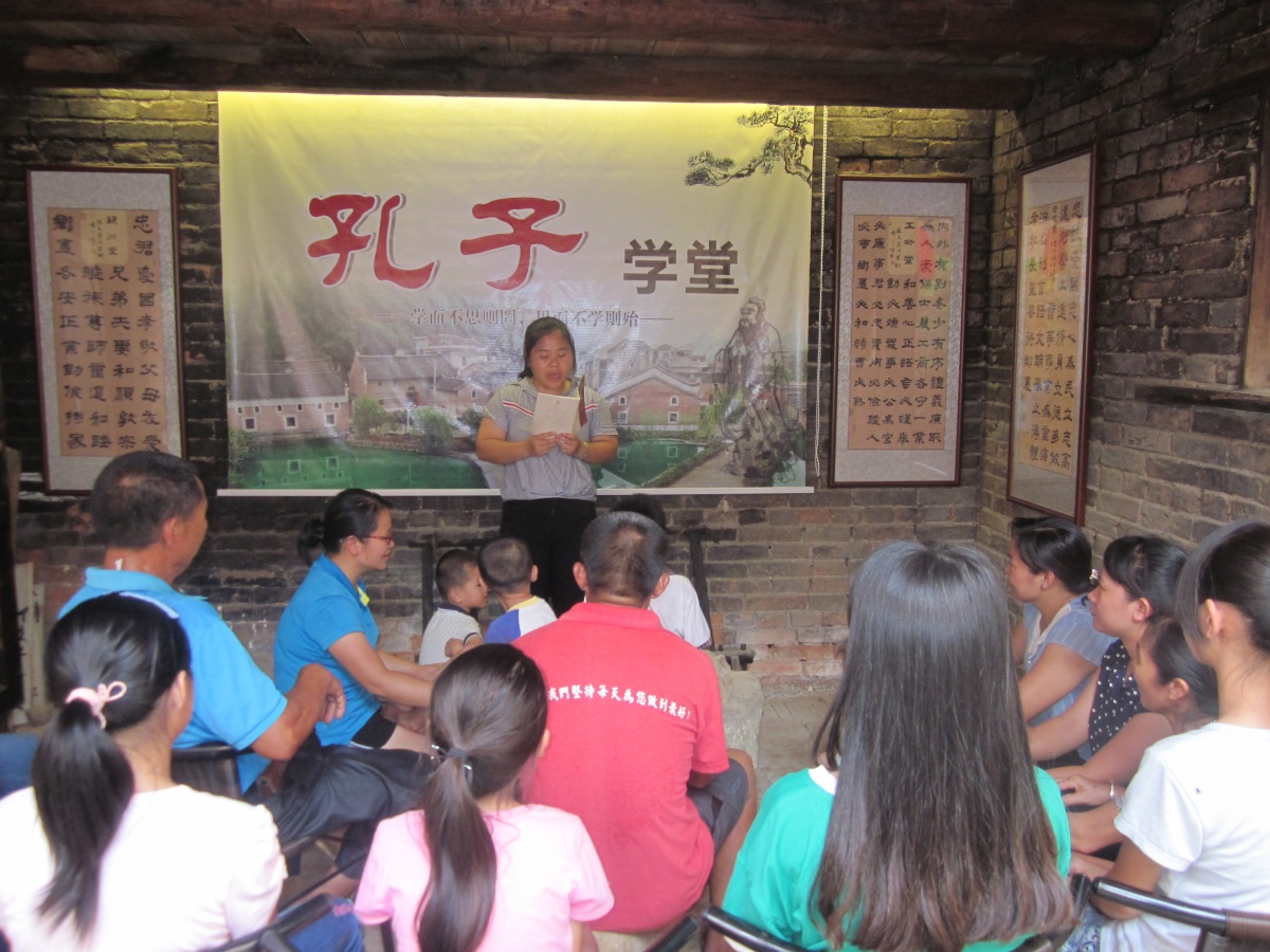 莲花镇门等村孔子学堂公益课堂开课现场。