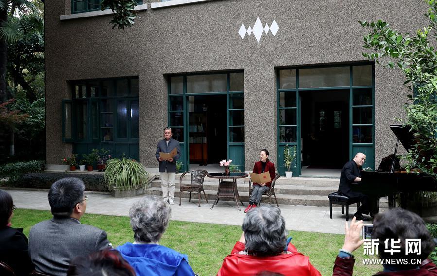 11月25日,演员王诗槐(左)、奚美娟(中)在钢琴演奏家孔祥东的伴奏中朗读巴金的文学作品。新华社记者 方喆摄 当日,“今天是您的生日——巴金/萧珊作品诵读会”在上海巴金故居举行。来自上海电影制片厂演员剧团的老艺术家们为受邀前来的文学爱好者诵读了巴金及其夫人萧珊的文学作品和家书,共同感受文学的独特魅力。