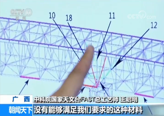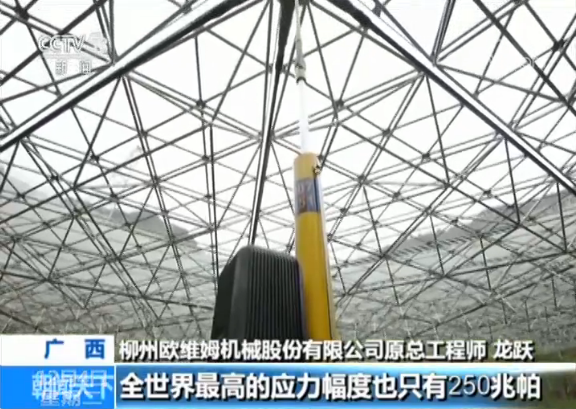 柳州欧维姆机械股份有限公司原总工程师 龙跃:当时,我在南宁跟天文台的王启明教授谈了三个小时,我觉得这个事情超乎我们的想像。同类型拉索里面,全世界最高的应力幅度也只有250兆帕, 500兆帕(应力幅)前面所有的人都没有去尝试过。 如果因为索网再去修改整体设计,天眼可能要耽误十年。面对国家重大工程需要,这个广西的“国字号”团队没有迟疑。 广西柳州欧维姆机械股份有限公司新技术研究所副所长 雷欢:我们作为一个这样的大型的国有企业,对这个(国家工程)也有一定的使命和责任,所以我们抱着尝试的心态去试一试。 他们迅速成立了专门的研究小组,从改进原材料入手,选用一种超级材料,创新制成高弹力的钢丝,力求从源头突破。一方面提升强度,一方面改进工艺提升弹性。当索的应力幅达到500兆帕以后,他们不停努力把拉伸次数提高到30万次,50万次,100万次,最终向200万次的目标无限靠近。