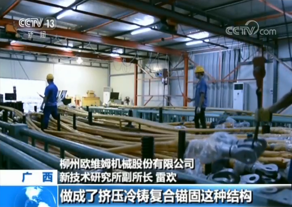广西柳州欧维姆机械股份有限公司新技术研究所副所长 雷欢:现有的锚固方式主要有三大类都不能满足这个要求。最后,我们把这个拉索做成了挤压冷铸复合锚固这种结构,然后就成功研制出了超高疲劳应力幅度的拉索。
