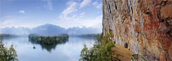 广西崇左市位于中国南疆,境内广泛分布着典型的喀斯特地貌,左江及其支流明江蜿蜒流淌,曲折盘旋于喀斯特峰丛洼地中。沿江两岸200多公里的悬崖绝壁上,保存有大量的古文化遗迹—岩画,是战国至东汉时期中国南方壮族先民骆越人的伟大创造。古老神奇、规模宏大的岩画与两岸绵延秀丽的山水形成了集“岩画—山体—河流”为一体的奇特景观。中国广西崇左市境内左江及其支流沿江两岸200多公里的悬崖绝壁上,保存有大量的古文化遗迹—岩画,是战国至东汉时期我国南方壮族先民骆越人的伟大创造。左江及支流山崖上目前已发现的岩画点有89个(含189处,300多组,5000多个图像),其中沿江分布的岩画点有65个,分别在崇左市管辖的宁明、龙州、江州和扶绥四个县(区)境内。宁明县的花山岩画因其规模宏大、场面壮观、图像众多而举世闻名,是左江流域岩画的典型代表。
