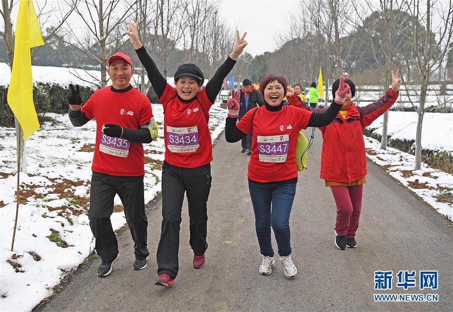 ↑1月1日,参赛选手在比赛中。南昌新年国际半程马拉松在江西省南昌县凤凰沟景区开跑,比赛设有半程马拉松、迷你马拉松(5公里)和亲子马拉松(5公里)三项,吸引了5000多名马拉松爱好者参赛。 2019年新年伊始,全国各地的健身爱好者不畏冬日严寒,以丰富多样的室外运动辞旧迎新。 新华社记者 万象摄