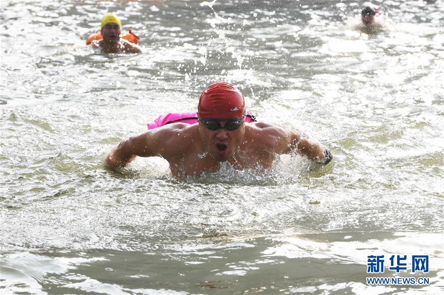 ↑1月1日,一名冬泳爱好者在黄河中冬泳。兰州市第30届元旦黄河冬泳活动在兰州市黄河河面上举行,来自各地的300多名冬泳爱好者畅游黄河。 2019年新年伊始,全国各地的健身爱好者不畏冬日严寒,以丰富多样的室外运动辞旧迎新。 新华社记者 范培珅摄