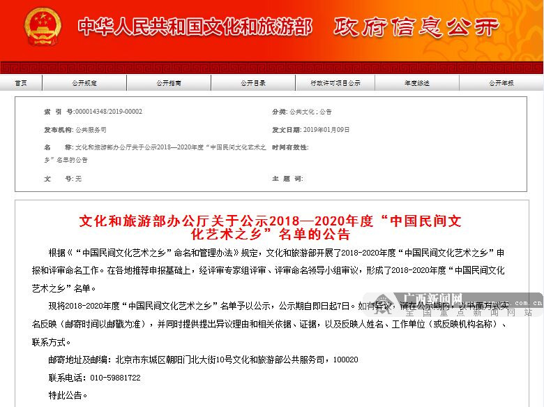 广西新闻网南宁1月21日讯(记者 黄玲娜)日前,文化和旅游部办公厅发布了关于公示2018—2020年度“中国民间文化艺术之乡”名单的公告。公告显示,175个乡镇入选2018-2020年度“中国民间文化艺术之乡”名单。广西有7地入围名单。