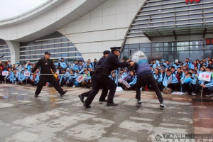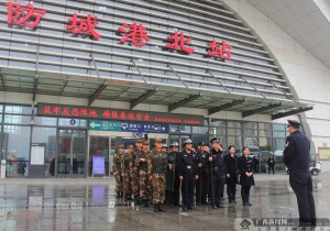 防城港北站作为广西唯一一个既沿边境又靠海港的高铁站,当天客流量相比平日里明显增大。为守护旅客出行平安,防城港北站派出所在春运期间增加客运执勤警力,加强站区重点部位巡逻,组织了一场精彩的反恐演练和宣传。