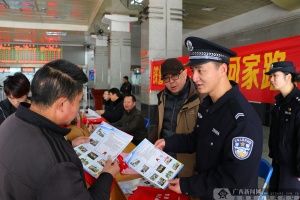 广西新闻网南宁1月21日(通讯员潘宏任 韦生辉 胡培 邓昕 记者伍永志)1月21日,2019年春运大幕正式开启。为确保旅客春运乘车安全,南宁铁路公安部门分别在南宁东站、桂林火车站、三江南站、防城港北站等车站,开展反恐实战演练、高铁霸座、反扒演示、禁限带违禁品和线路防范宣传等多种形式的表演,将防诈骗、防偷盗、购票安全常识、乘车安全防范等知识融进表演里。并安排体验式互动环节,通过民警与群众现场互动,让旅客群众在欣赏节目的同时,了解春运乘车相关知识。