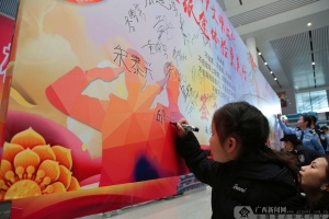 在南宁东站,民警发起“文明出行,让旅途体验更美好”的签名倡议活动,同时进行动车“霸座”和吸烟的情景演示,现场讲解正确应对“姿势”;进行了防扒防骗宣传,现场发放印有防扒防骗提示和列车时刻表的宣传单,让旅客“少被偷、少上当”;开展了“千幅春联万福字”活动,南宁铁警现场书写春联并赠予旅客,给广大旅客朋友送上一份衷心的祝福等。