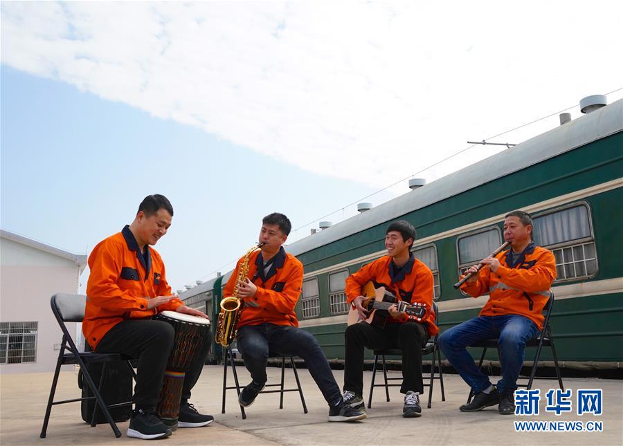 1月23日,江西鹰潭工务机械段工作人员在工闲时间弹奏乐器。新华社记者胡晨欢摄