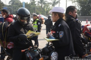 为安全保畅通,在服务站内,人群车辆中穿梭的交警甚是引人注目,也是最忙碌的。1月21日,春运开始,梧州交警部门就派执勤民警到服务站开展安全保障、疏导交通,确保“摩托车返乡大军”一路安全畅通。