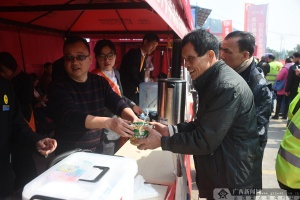 “一碗热腾腾的泡面让外出务工人员暖暖身体,补一补回家的能量。”1月27日中午12时许,青年志愿服务分队的莫冰与其他同事在上午10点运来5箱泡面,已经分发完毕,其余的泡面正在运送的途中。急于赶路的返乡务工人员就在旁边领取两个面包和一杯姜糖水,吃完便继续赶路。