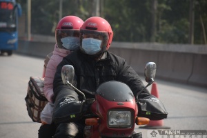 从1月21日开始,像甘坤左一样的务工人员陆陆续续地启程回家,而选择骑摩托车回家的这一部分群体,则被称为“返乡摩托车大军”。春节在冬季,在没有任何挡风设备的情况下,骑在摩托车上的人常常直面寒风。“因为天气比较冷,用塑料袋绑在腿脚上,既可以防寒风,也可防止泥土溅到裤子。”甘坤左解释现场不少农民工腿上绑着塑料布的原因。