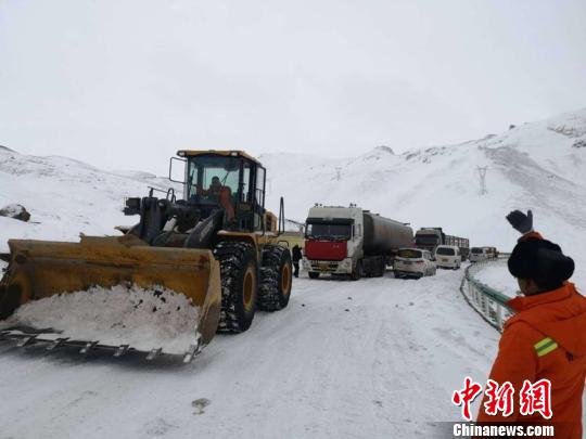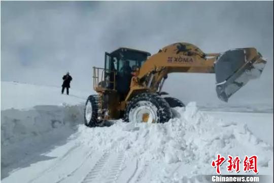 图为积雪路面抢通工作现场。 钟欣 摄